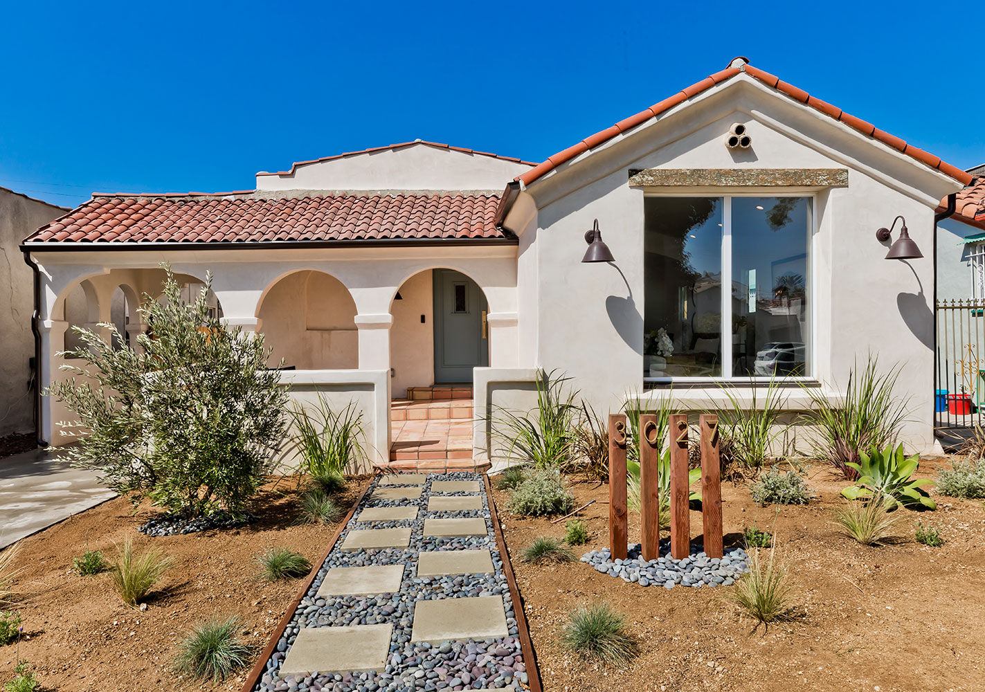 Experience This Modern Spanish Home w/ Guesthouse (ADU) & Enjoy All Of The Amenities In The Highly Desirable West Adams Neighborhood. Enter The Light Filled & Spacious Living Room, W/ Its Decorative Fireplace, Dramatic Domed Ceiling, Large Picturesque Front Window & Wide Plank Engineered Wood Floors. The Dining Room W/ Modern Edison Light Fixture Opens To The Spacious Kitchen W/ Skylight, Deep Single Basin SS Sink, New Cabinetry, Quartz Countertops, Stainless Steel Appliances & Island. The En-Suite Master Bedroom Features French Doors That Open Onto The Newly Landscaped Grassy Yard & Features A Brightly Lit Master Bath W/ Skylight & A Double Sink Vanity. Other Features Include 2 Additional Bedrooms, A 2nd Full Bath & Powder Room, Recessed Lighting Throughout, Tons Of Storage & A Ring Doorbell System. Located At The End Of The Long Driveway Is The Fully Equipped Detached Guesthouse W/ Kitchen & Bath. All New: Doors & Windows Throughout, Wood Fencing, Plumbing, Roof, Electrical & HVAC.